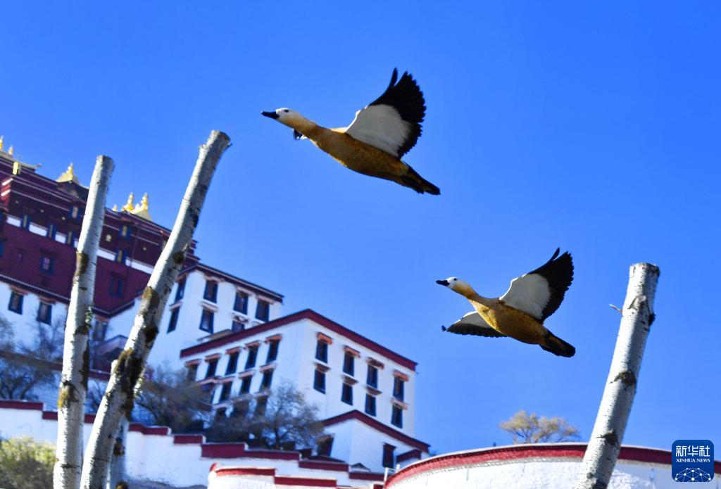 初冬时节,被誉为“日光城”的拉萨晴空万里。布达拉宫脚下的龙王潭公园里,候鸟翔集,生机无限。