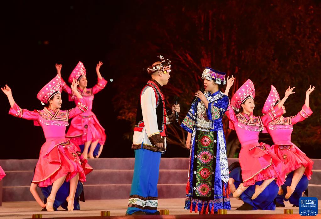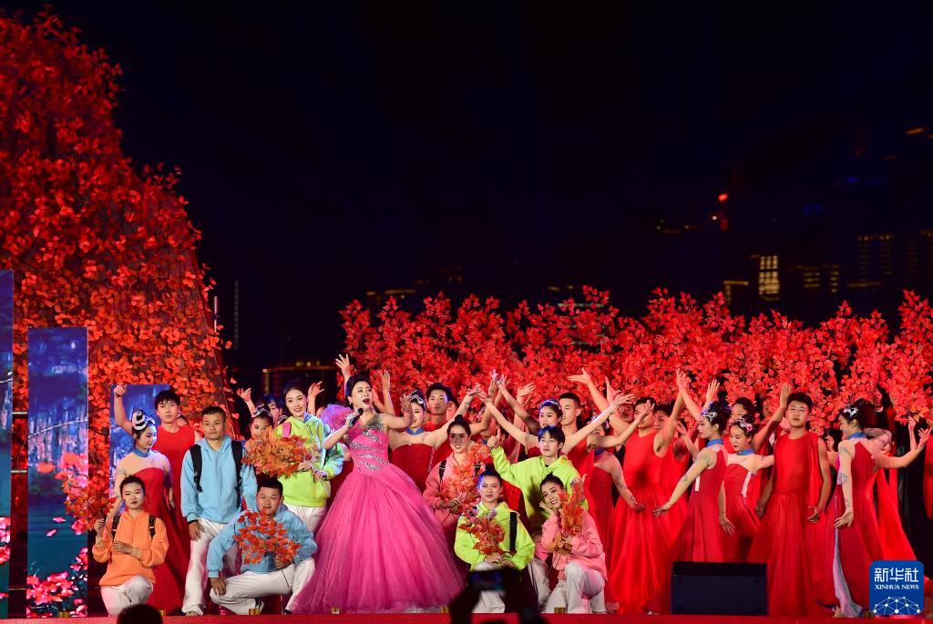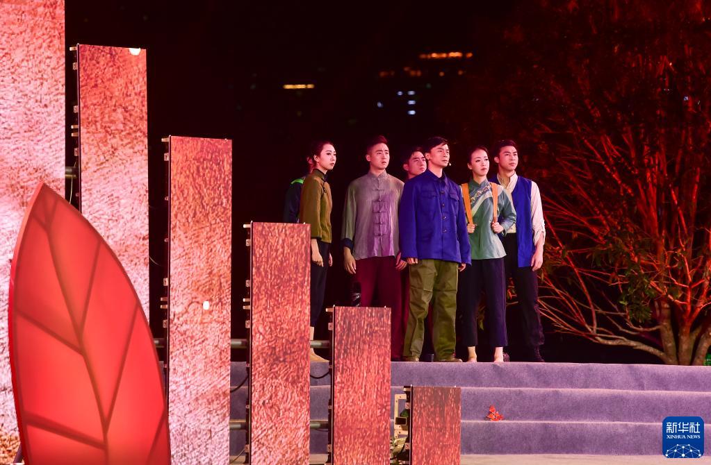 11月26日,演员在开幕式晚会上演绎歌舞《满山红叶似彩霞》。
