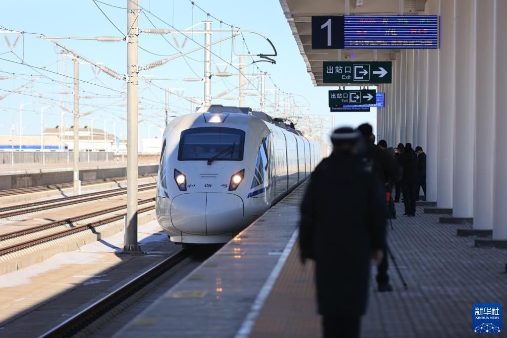12月5日,动车组列车驶入兰新高铁山丹马场站。