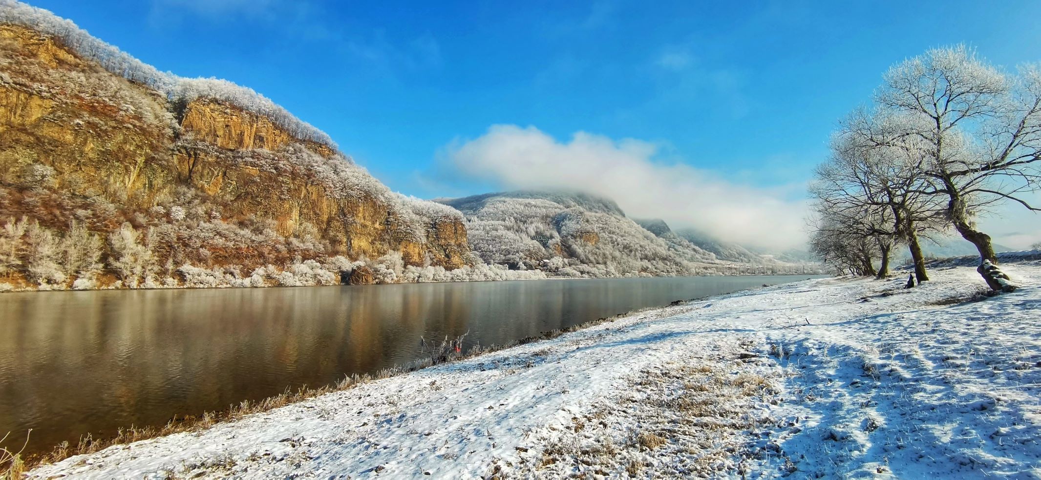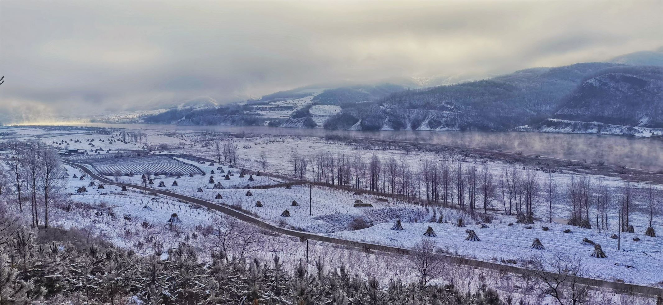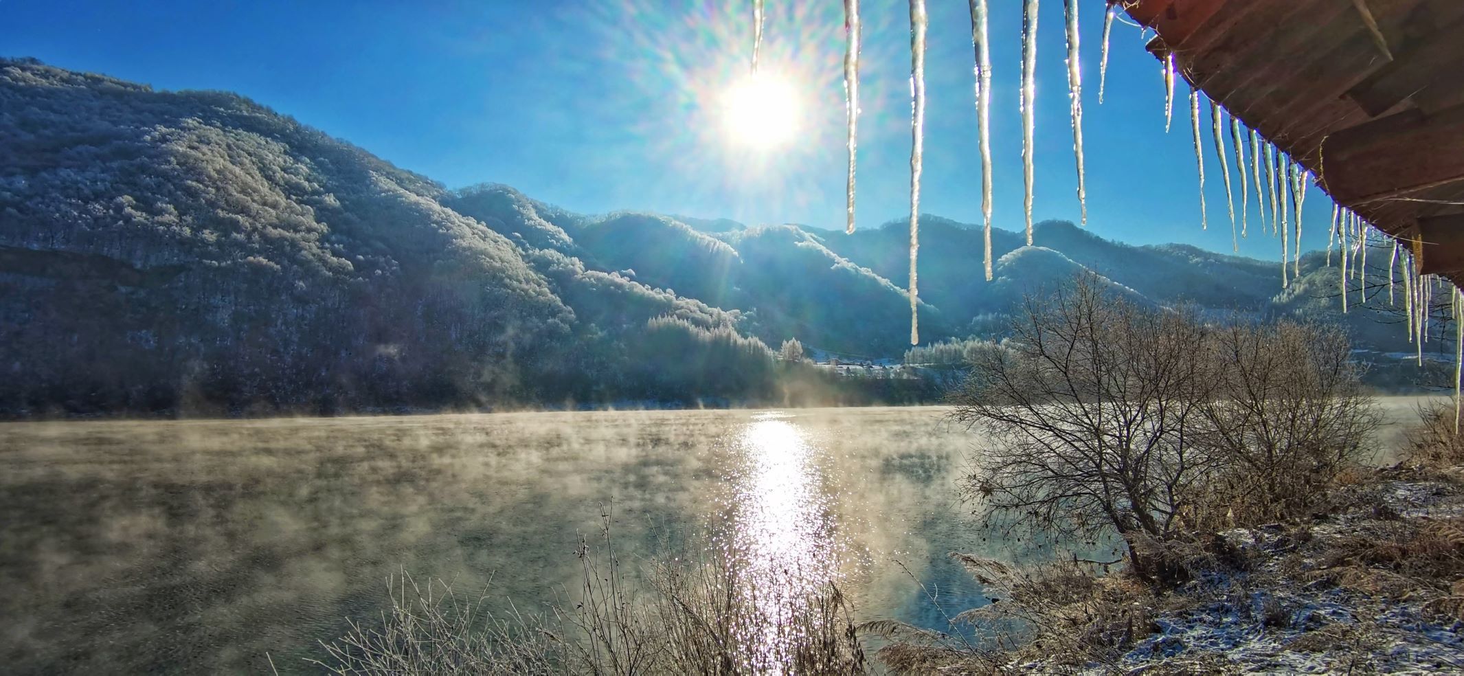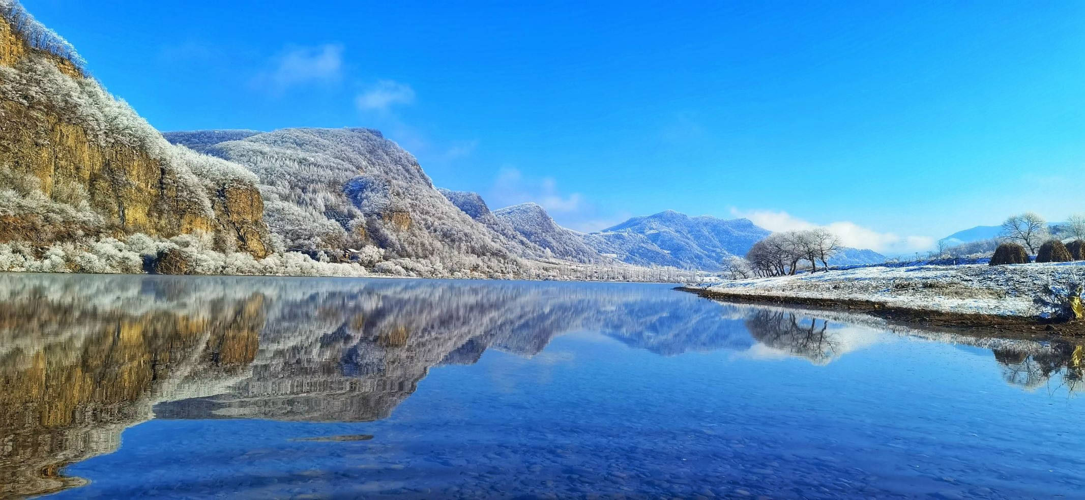 宽甸步达远镇浑江流域,清晨雾渐渐散去,洁白的冰晶凝结在两岸的树木上,形成雾凇,与蓝天和碧水相映,犹如美丽的童话世界。