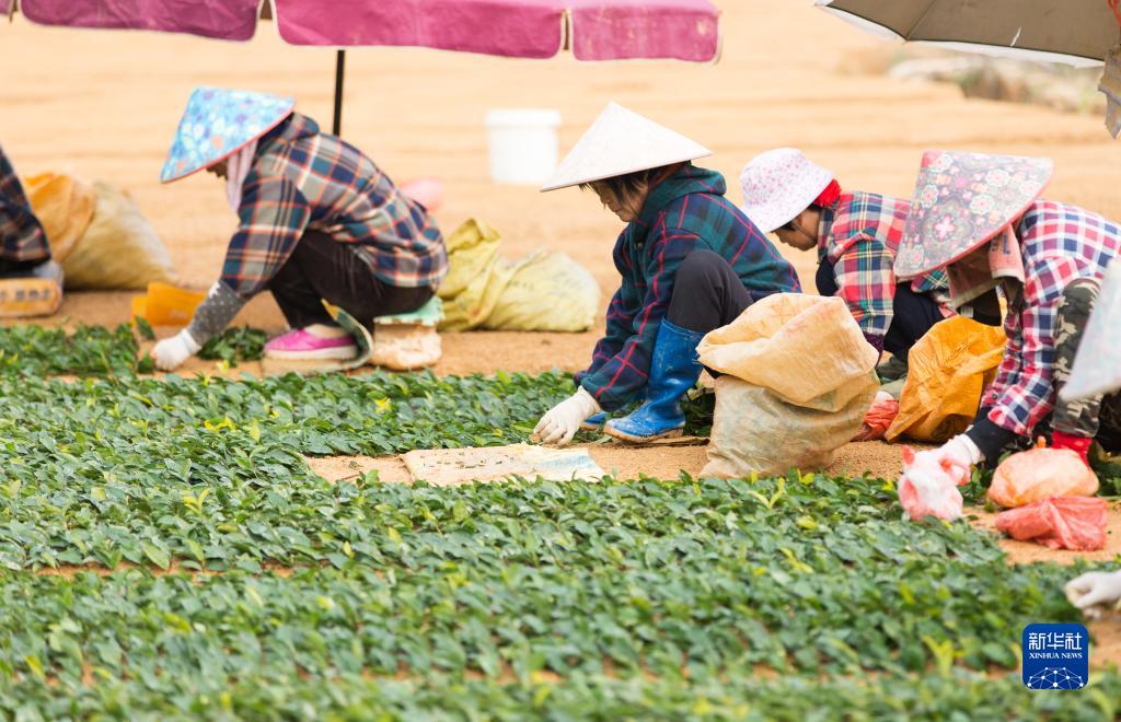 眼下,当地正迎来成熟茶苗收成、新茶苗培育的季节,原本的冬闲时节成了茶农增收的繁忙季。