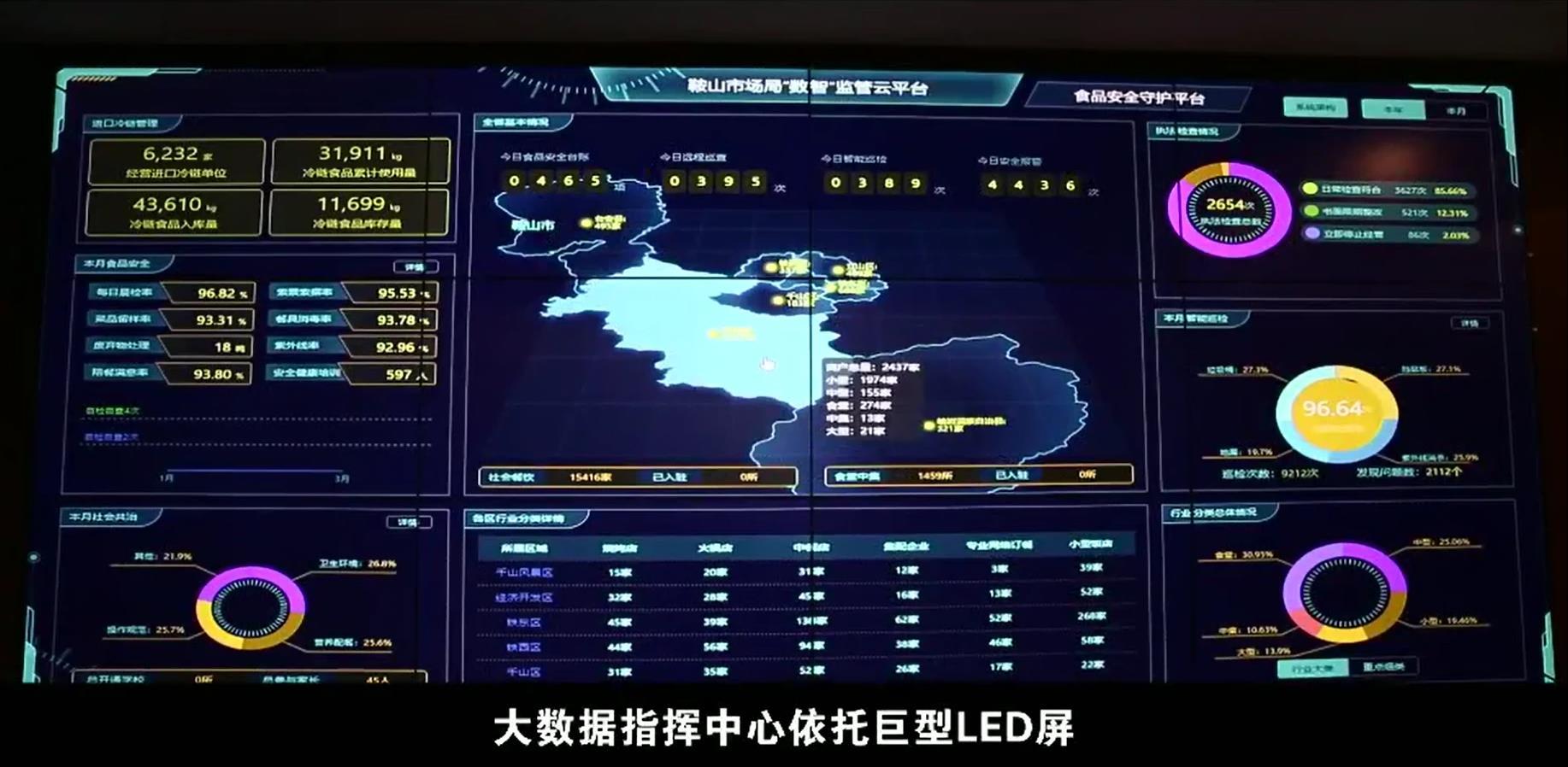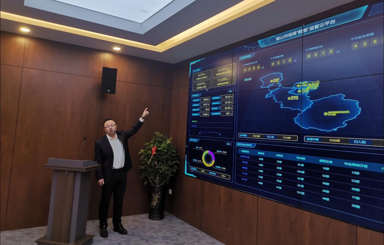 目前,鞍山市市场监管局“数智”监管平台指挥中心已建设完工,全市920家学校(托幼机构)食堂、集体配餐单位、183家规模以上餐饮单位、中央厨房近7400家已经入驻平台。