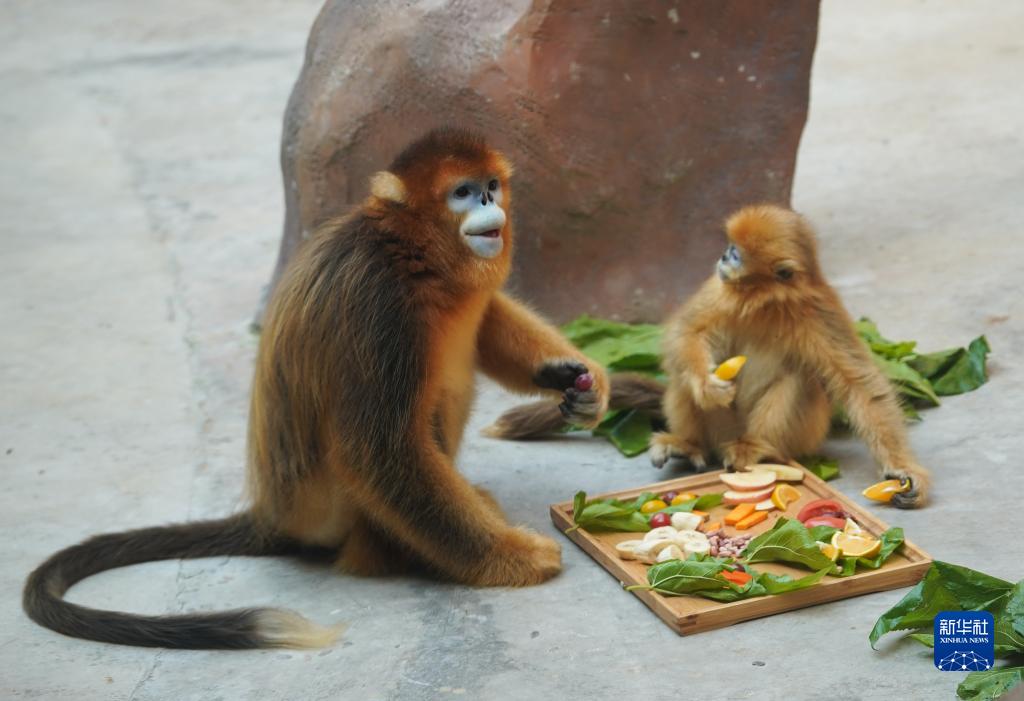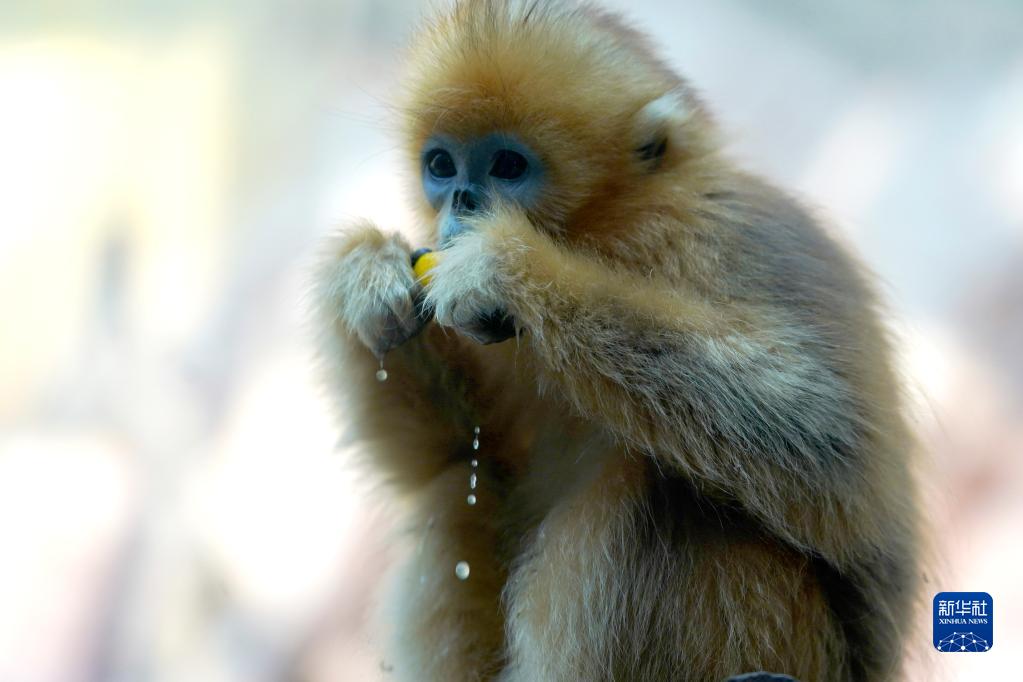 当日,南通森林野生动物园两只川金丝猴与市民见面。川金丝猴是中国特有物种,属国家一级重点保护动物。