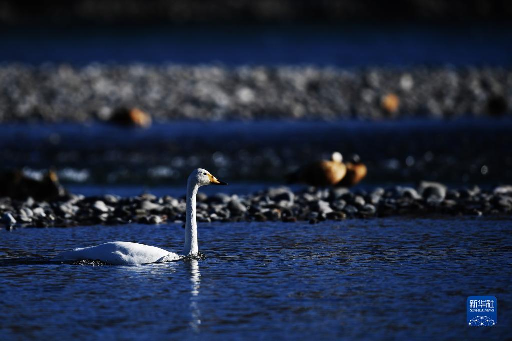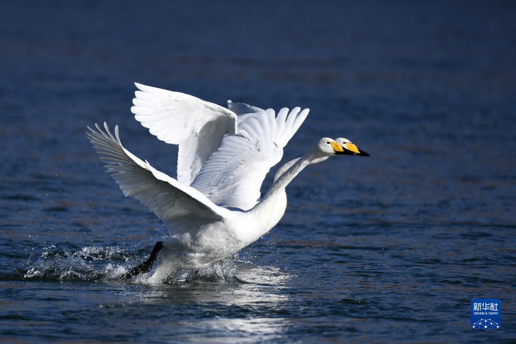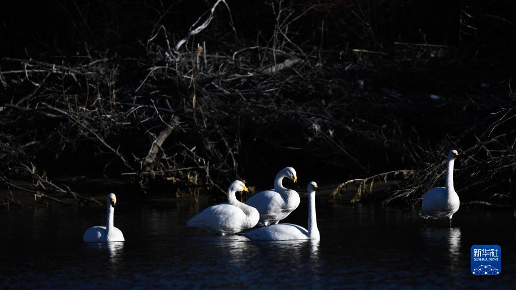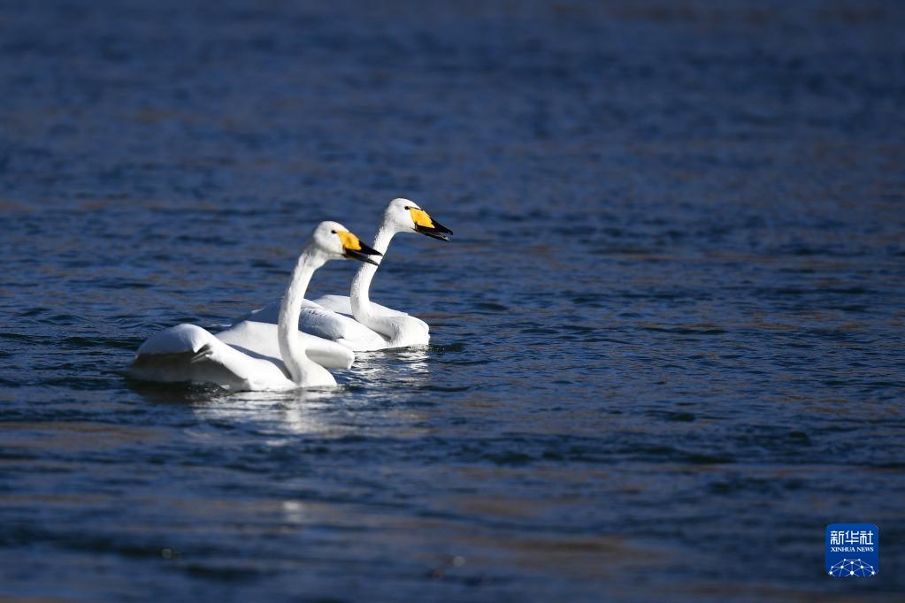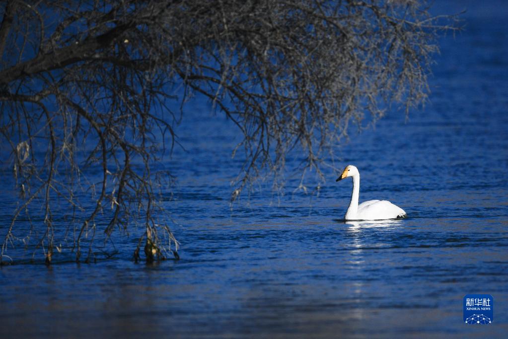近日,前来越冬的近百只天鹅在青海省海南藏族自治州贵德县境内的黄河湿地觅食休憩,为冬日黄河带来勃勃生机。近年来,青海省加大力度保护治理境内黄河流域,改善当地生态环境,为越冬候鸟提供良好栖息地。