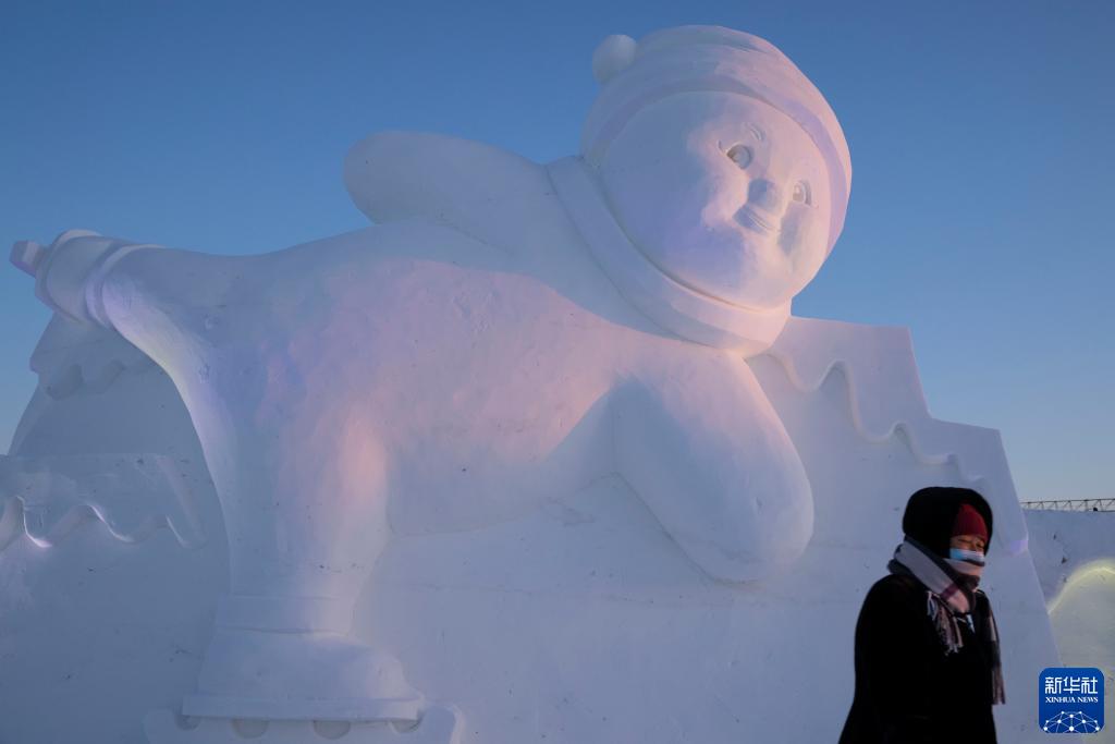 12月25日,游客在哈尔滨冰雪大世界园区游玩。