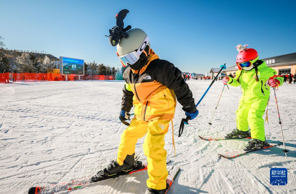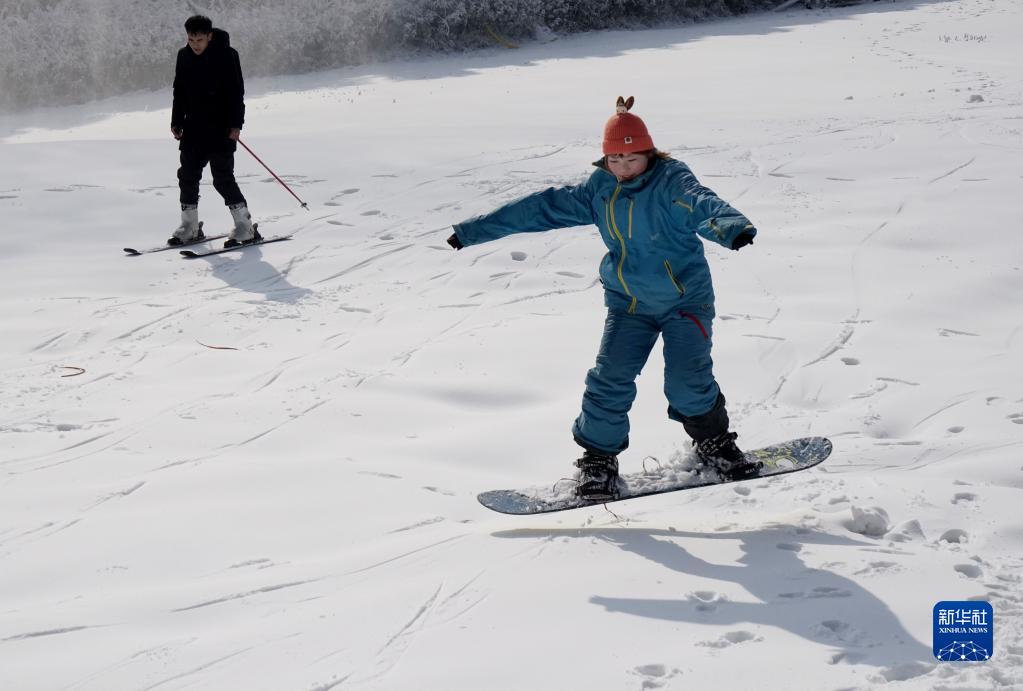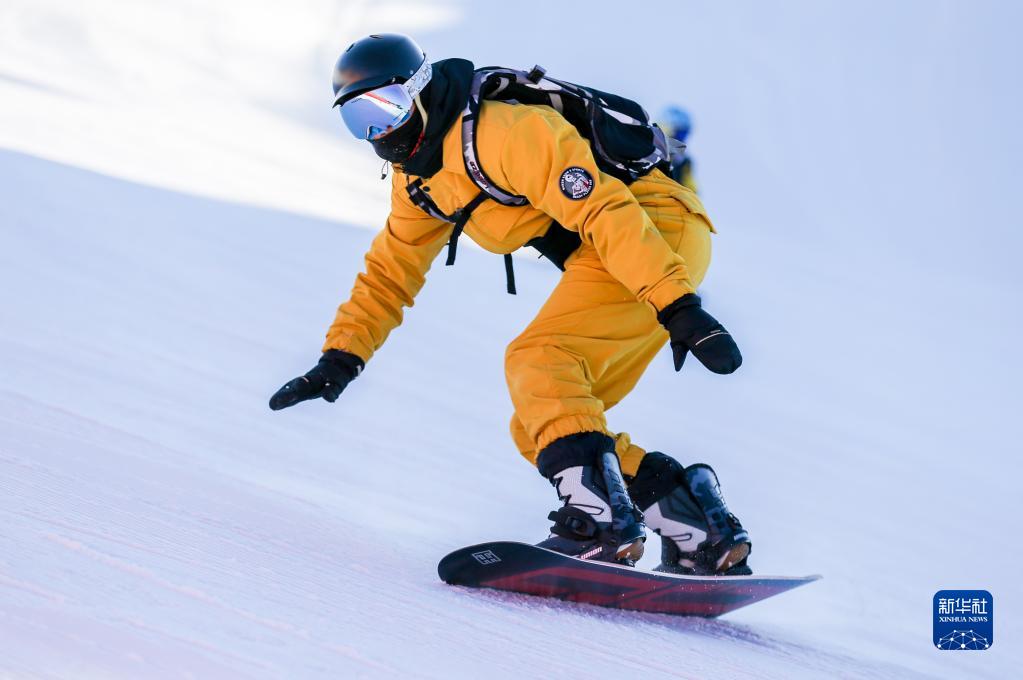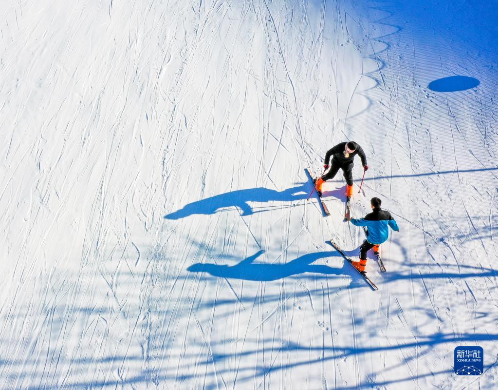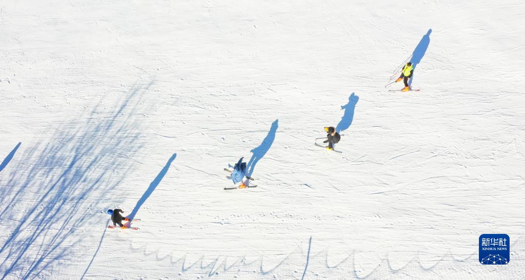 12月26日,滑雪爱好者在内蒙古呼和浩特的马鬃山滑雪场滑雪。