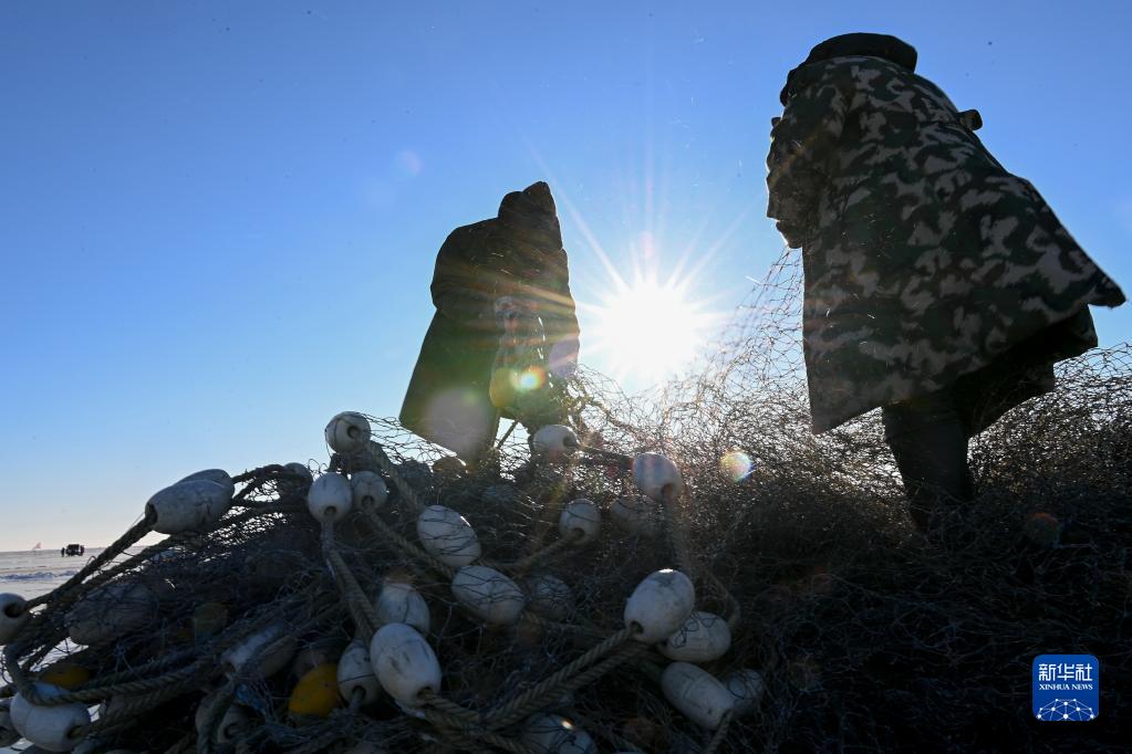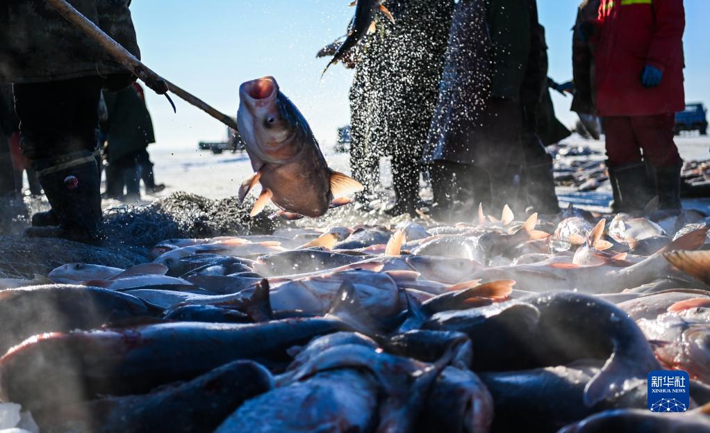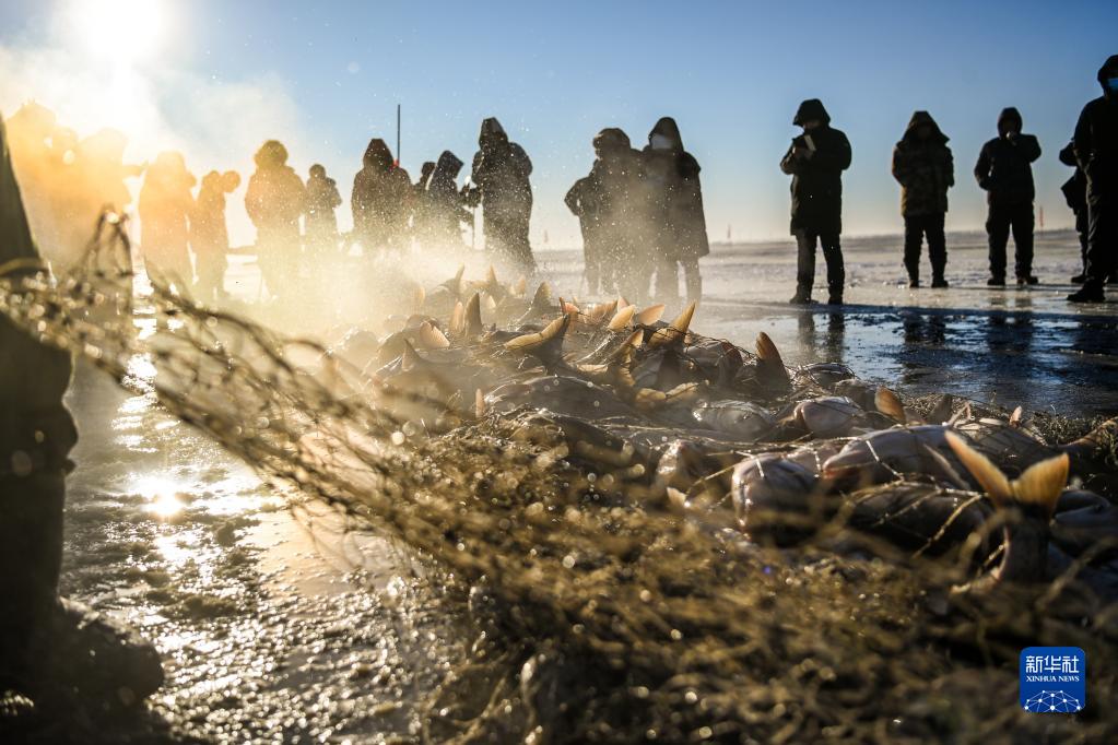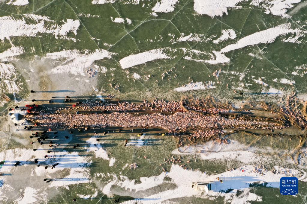 查干湖位于中国吉林省松原市前郭尔罗斯蒙古族自治县,渔产资源丰富,被誉为“中国北方最后的渔猎部落”。每年12月末,在查干湖冰封湖面上,渔民先用冰锥在湖面上凿出几百个冰洞,然后利用穿针引线的原理将几千米长的渔网按照冰洞间的连线形成合围,再用马拉绞盘收网捕鱼,查干湖冬捕奇观已列入中国国家级非物质文化遗产。