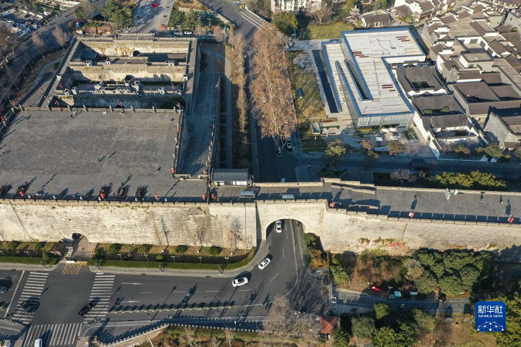 12月28日拍摄的南京城墙博物馆及周边景色(无人机照片)。