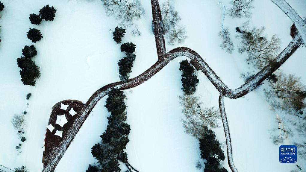 这是1月2日拍摄的哈尔滨市湘江公园一角(无人机照片)。