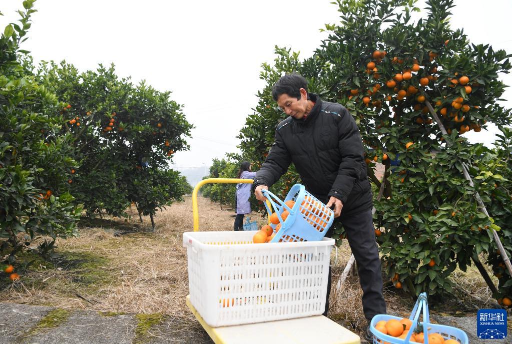 1月6日,七塘镇跃进村村民在提运刚采摘的塔罗科血橙。