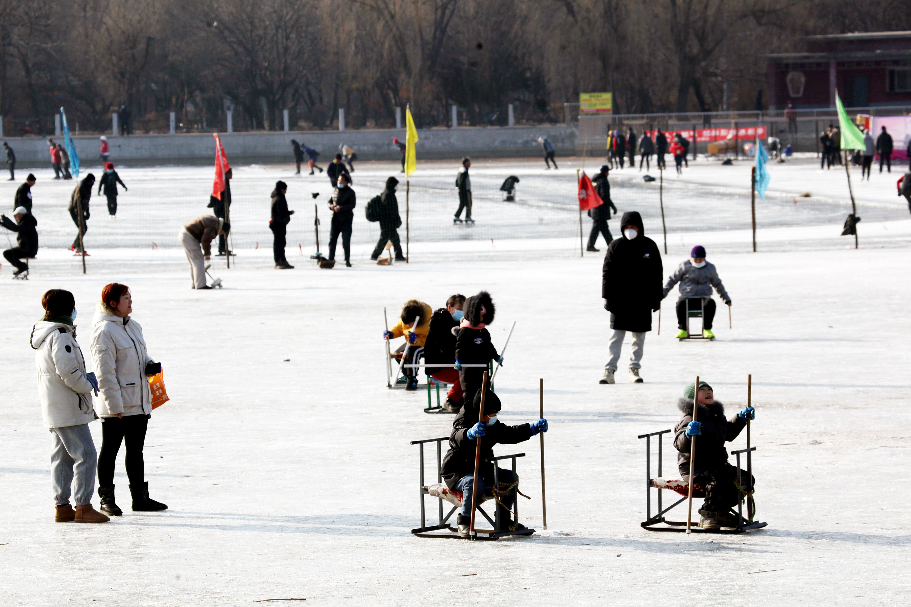 1月5日,小寒节气,虽然天寒地冻,但在沈阳市劳动公园人工湖上热闹非凡,滑冰的、打冰球的、滑冰车的,人们尽情地享受着冰上运动乐趣。