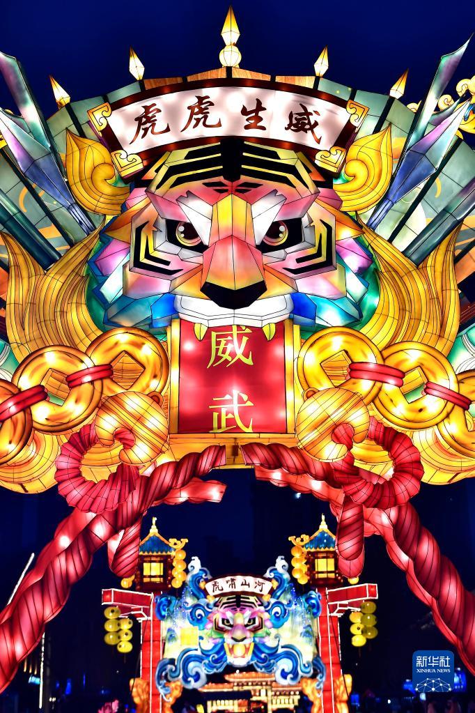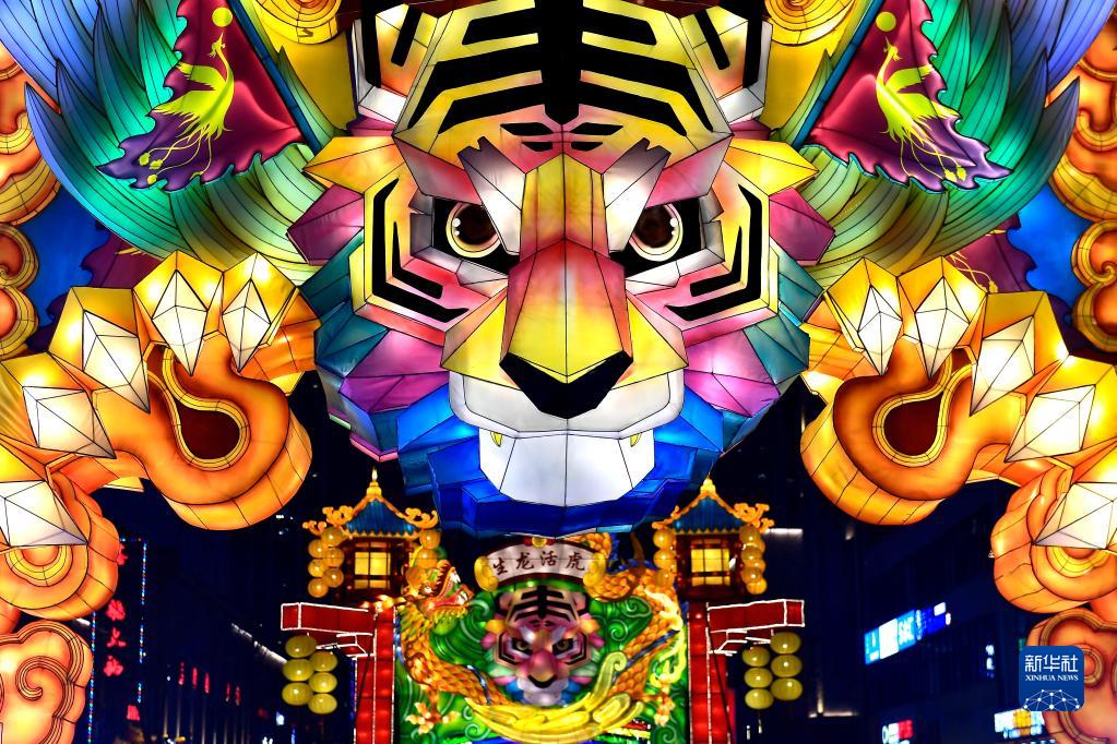 近日,济南市槐荫区印象济南·泉世界的虎年生肖花灯点靓泉城济南夜生活,营造浓浓的节日气氛。