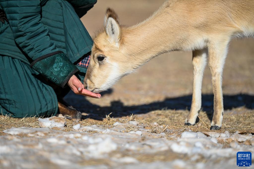 那时的小黄羊身体虚弱、气息奄奄。为了挽救这个小生命,乌伊汗如同养育自己的孩子一样养育它,并给它取了一个蒙古族名字“蹦泼来”,汉语意思为“胖乎乎、圆滚滚”,希望它能健康成长。