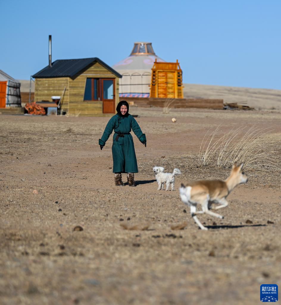 在内蒙古锡林郭勒盟苏尼特左旗赛罕高毕苏木,一只刚满6个月大的小黄羊,如精灵一般在草原上奔跑跳跃。“蹦泼来……”远处的蒙古包中传来“妈妈”的呼唤,小黄羊朝家的方向跑去。