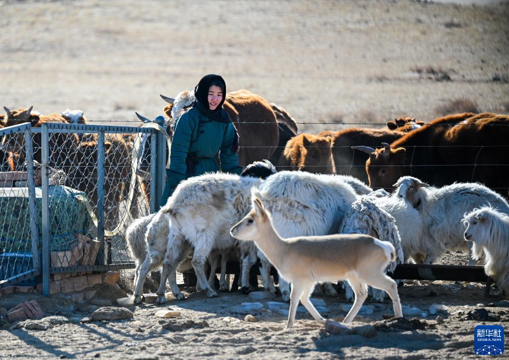 经过半年多时间的悉心照料,小黄羊“蹦泼来”逐渐长大。在乌伊汗家里,小黄羊并不寂寞,它和小牛羊、小狗、小猫成了“好朋友”,每天在草原上快乐嬉戏。