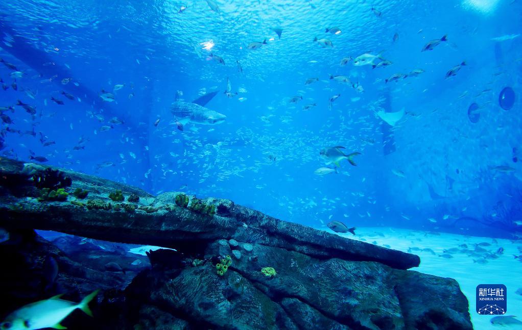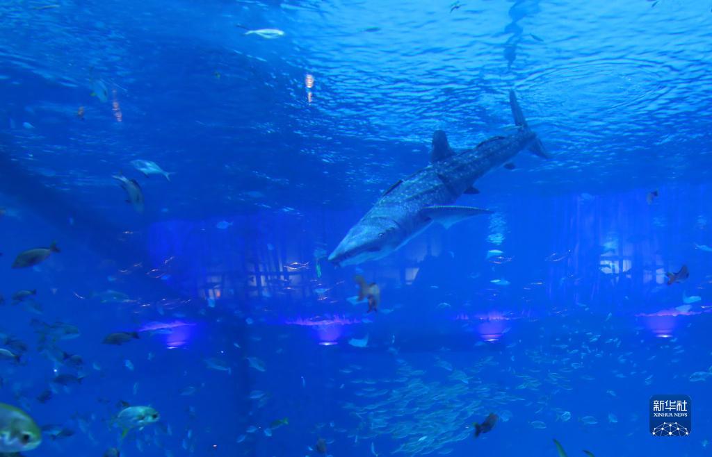 当日,一条仿生鲸鲨在上海海昌海洋公园下水,正式与游客见面。这条仿生鲸鲨由沈阳航天新光集团有限公司生产,体长近5米,采用锂电池驱动,最大游速0.7米/秒,最大下潜深度10米。多关节仿生推进技术、浮力调节技术和水下视觉技术的应用,加上表面覆盖的仿生蒙皮,使得仿生鲸鲨能高度仿真模拟真实鲸鲨动作,在水中自主完成直线、转弯、上浮、下潜、定深、嘴部张合等动作,还具备水下定位功能。