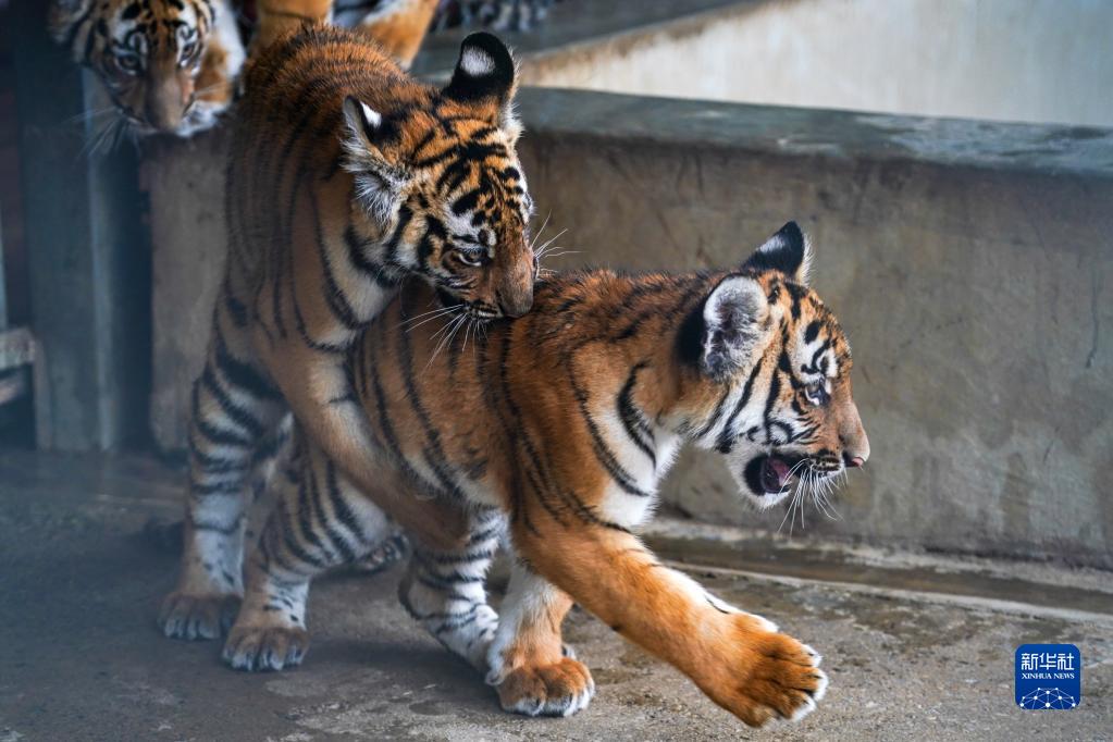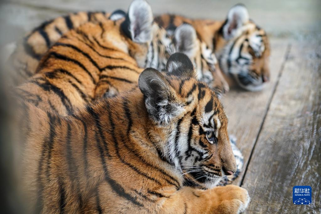 虎年即将到来,苏州上方山森林动物世界2021年9月出生的4只憨态可掬的小华南虎,吸引了众多游客的目光,为新春增添节日气氛。