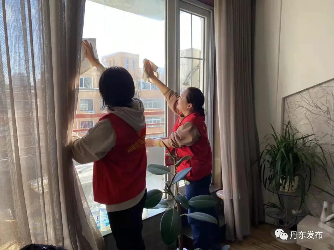 永昌街道组织辖区内志愿者上门帮助行动不便的居民擦玻璃、打扫卫生。