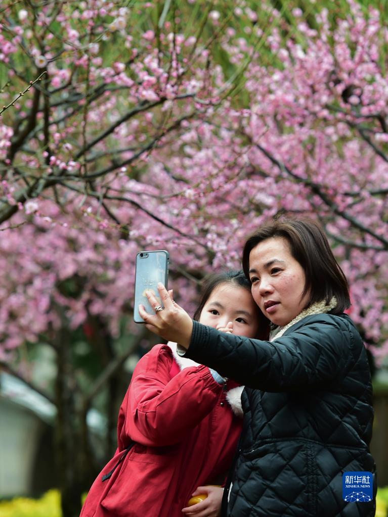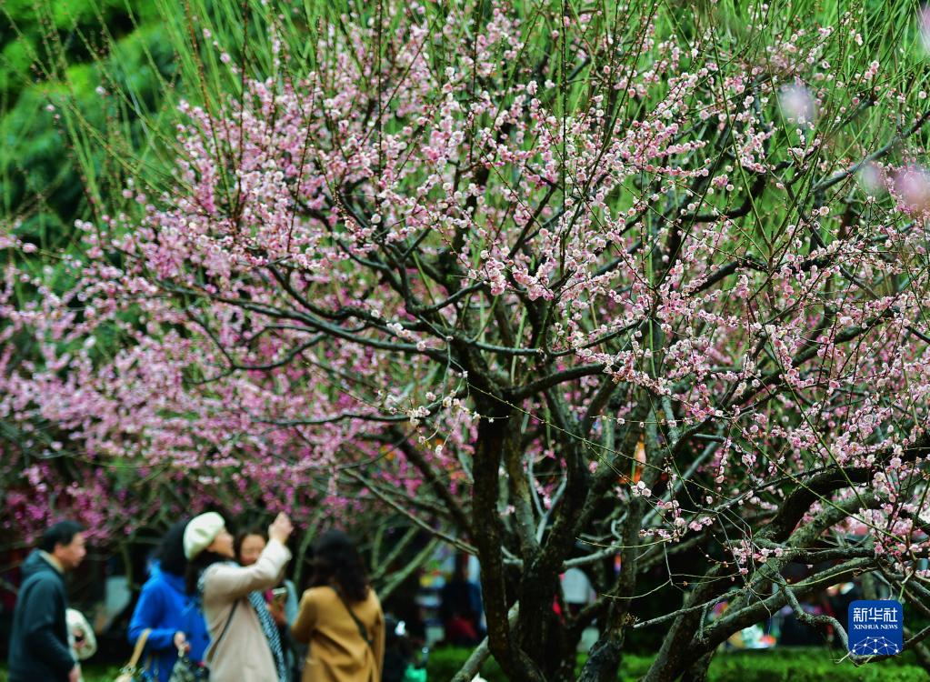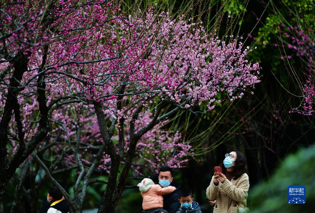近日,福建省福州西湖公园里的梅花竞相绽放,吸引人们徜徉其间、赏花留影,成为一道靓丽的风景线。