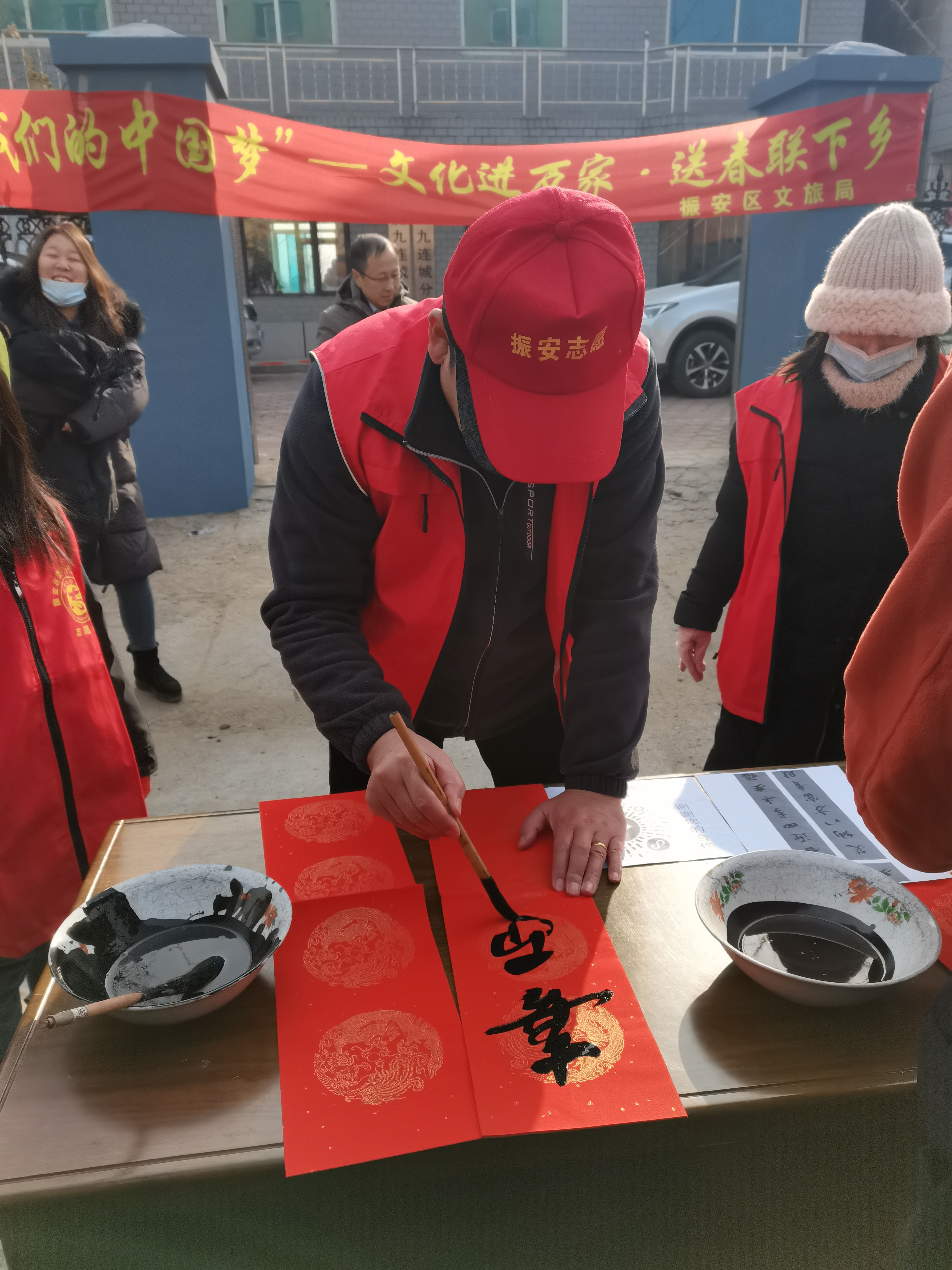 为弘扬传统文化艺术,由丹东振安区文旅广电局主办、振安区文化馆承办的 “我们的中国梦”——文化进万家·送春联下乡”公益活动,走进了九连城集市。