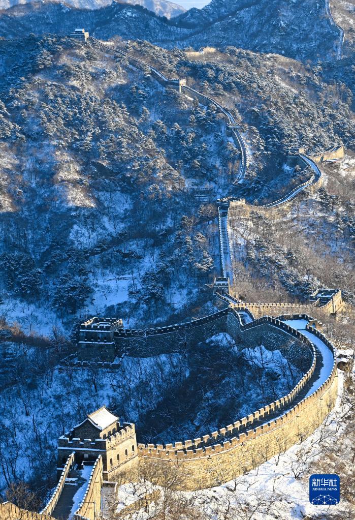 近日,北京迎来降雪天气。雪后的慕田峪长城犹如长龙卧于银装素裹的山脊,蔚为壮观。