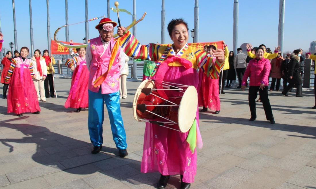 近日,丹东市老年健身爱好者在位于鸭绿江畔的文化广场进行了健身表演。来自五龙背镇的腰鼓、同兴镇的花棍、九连城镇的手拍鼓等纷纷登场,展现了新时代老年人的自豪感和幸福感。