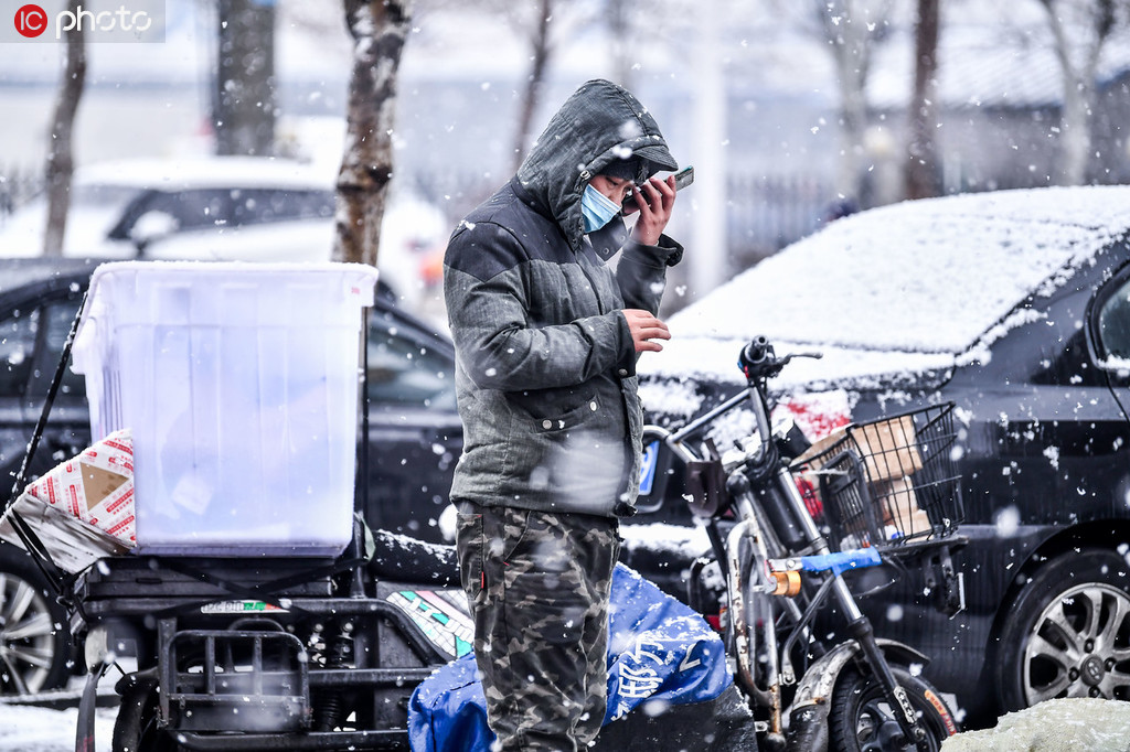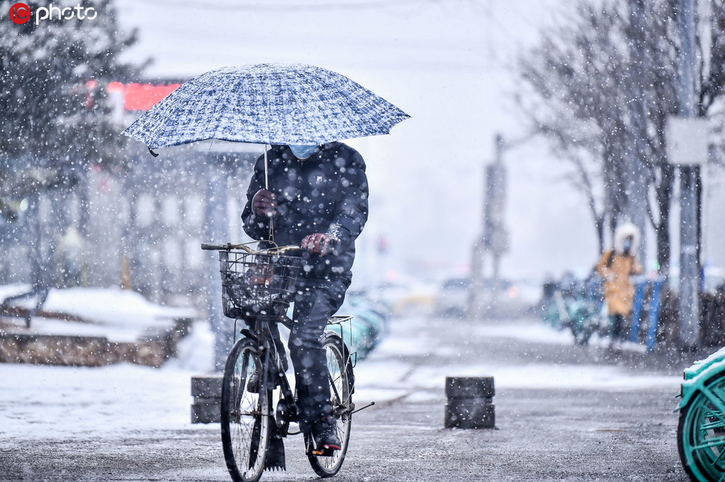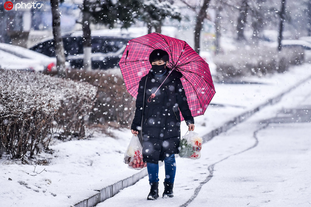 日,辽宁沈阳普降大雪,市民冒雪出行。姜旭