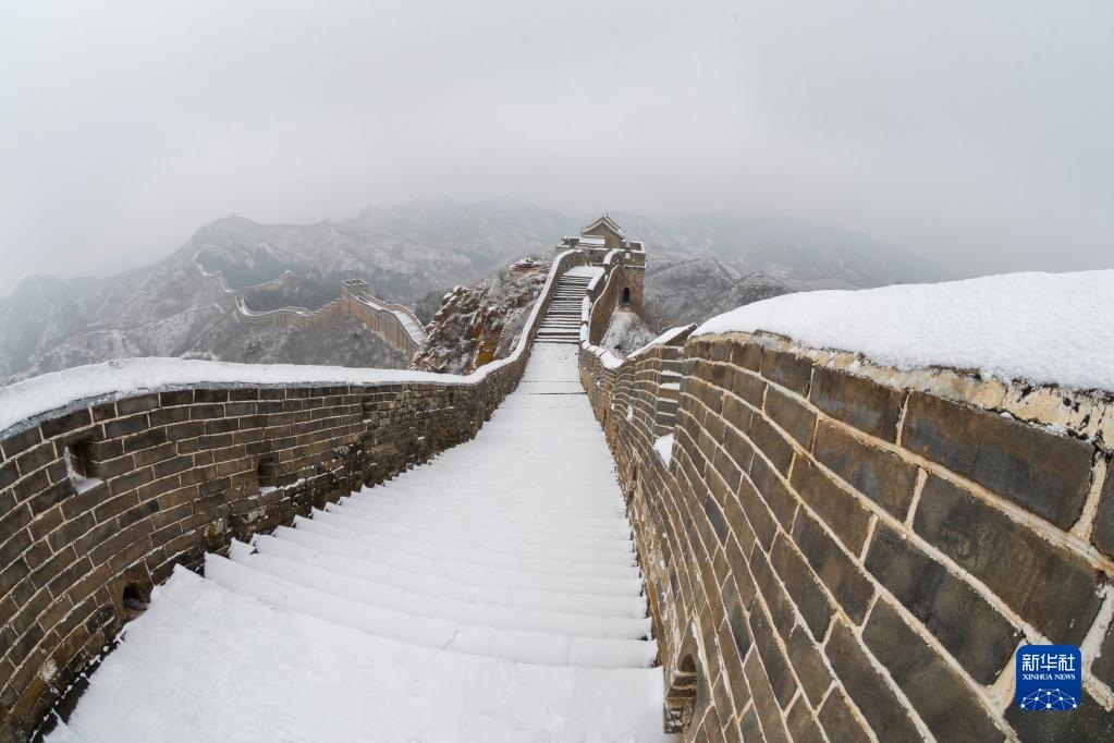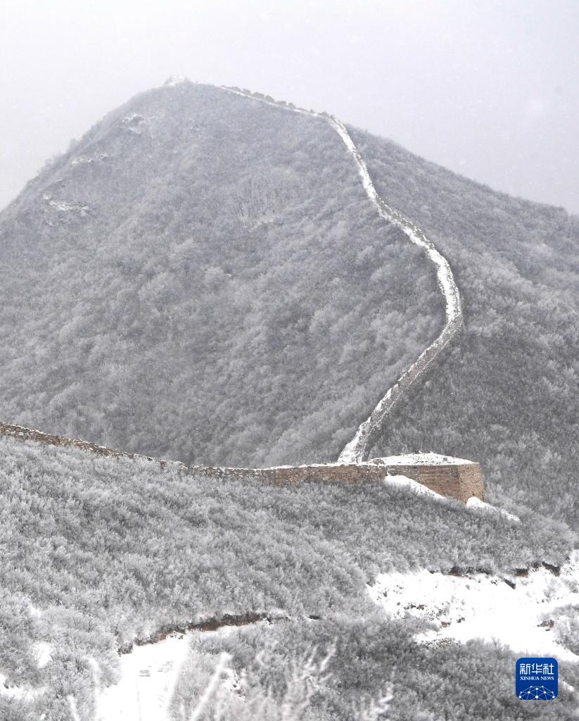 当日,河北迎来降雪。皑皑白雪覆盖长城内外,景色壮美。
