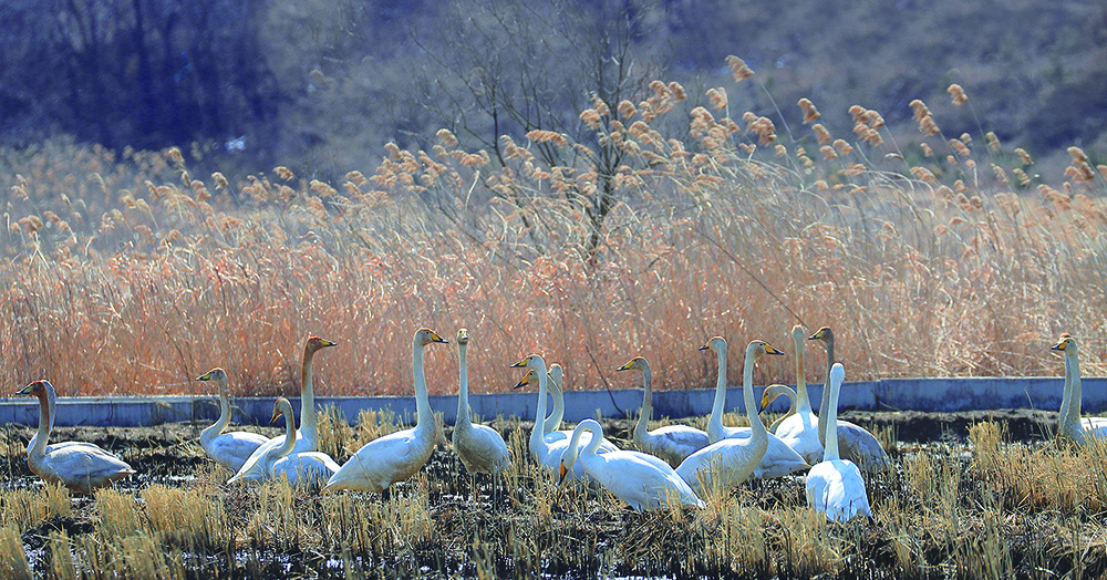 日前,数百只大天鹅从丹东凤城市蓝旗镇梅家堡子村境内的大洋河出发,向北迁徙。3月20日,还留在本地的近200只大天鹅到村庄附近的农田里寻找食物,补充体能。随着当地居民爱护野生动物意识逐步提高,大天鹅在当地的活动范围进一步扩大。