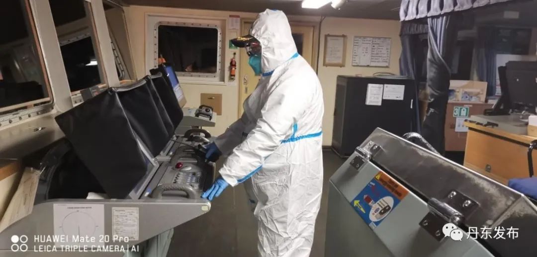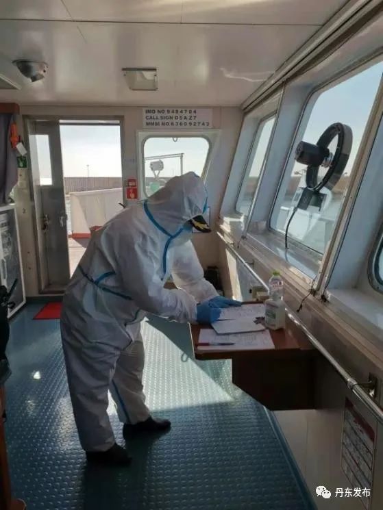 他们虽不是医护人员,却日夜坚守在口岸防疫保畅的第一线,在港口这一特殊的抗疫战场上,引航员们“白衣披甲”,党员干部冲锋在前,守卫“水上国门”,肩起稳外贸、保畅通、保民生的重任。3月下旬,丹东港大东港区,一艘满载18万吨铁矿石的外籍“商人”号散货轮,在锚地已经抛锚二十几天了,一直靠泊不了,船方和企业心急如焚。“出发。”3月28日15时40分,接到丹东港引航调度指令后,引航站专班高级引航员孙德刚穿好防护服,戴好护目镜、防护面罩和N95口罩……搭乘引航拖轮到达了登轮点。
