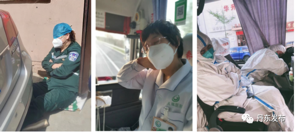 队员们每天4点从隔离宾馆准时出发,乘车来到振兴区各个隔离点,开始一天的工作。因为经常需要入户采集核酸,一栋楼爬上爬下,很多人的防护服很快湿透了。午饭,就地解决;短暂的休息时间,很多人倒地就睡。回到隔离宾馆时,已是满天繁星,往返的路上是大家最佳补觉时机……