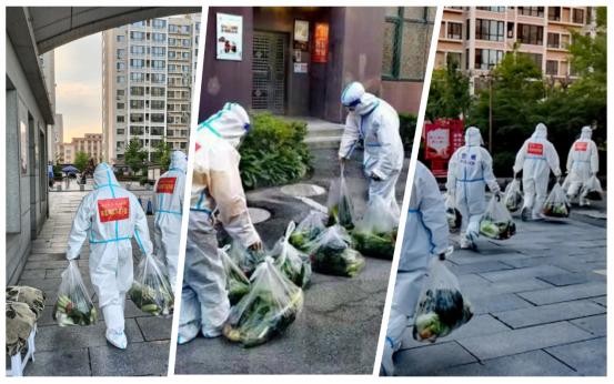 姚增武、张志鸿、赵帅下沉振安区鸭绿江街道东泰社区景苑家园小区,分为两组,每组值守一天一夜。小区保供蔬菜包到位,他们和交警、业主委员会工作人员一起承担配送工作,第一时间对蔬菜包进行科学消杀,分发到居民手中。