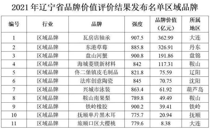日前,在省市场监管局指导下,省品牌建设促进会联合辽宁广播电视台发布2021年辽宁省品牌价值评价结果信息。评价结果显示,我省9个品牌价值超百亿元。“东港草莓”以品牌价值326.91亿元排在区域品牌第二位。