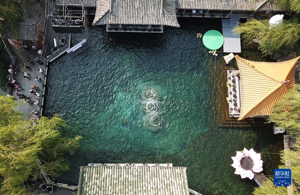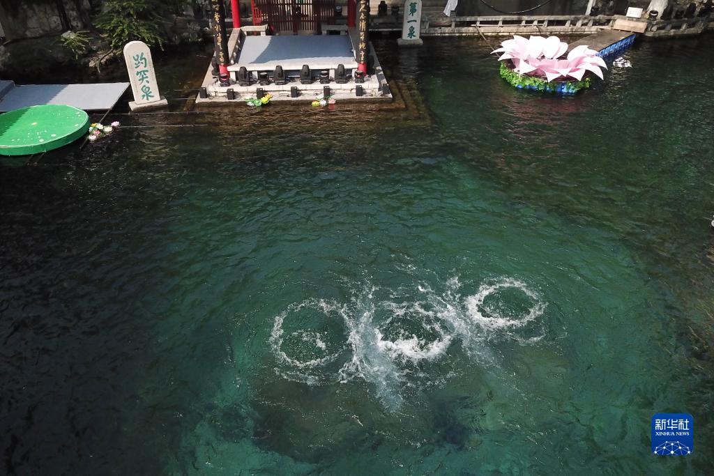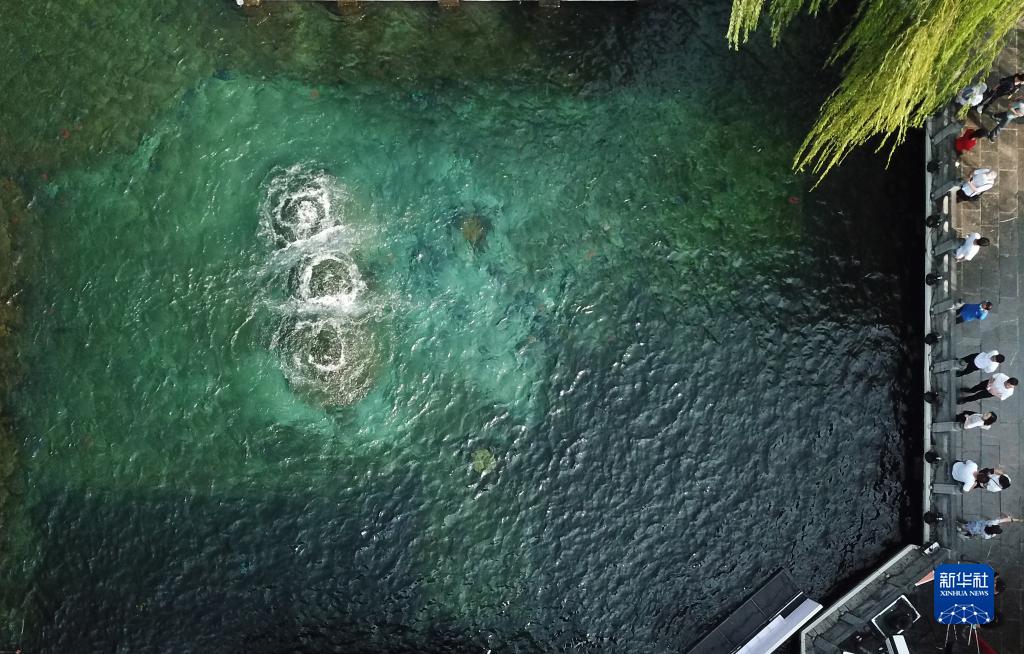 9月6日,济南趵突泉泉水喷涌(无人机照片)。