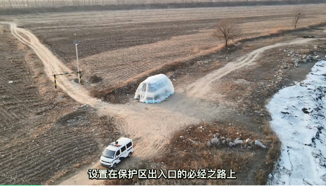 距离孤山边境派出所5公里的路程便是鸭绿江口湿地保护区,那条进入保护区的必经之路旁驻扎着派出所的执勤方舱。为防严寒,方舱外层裹着厚厚的塑料布,放眼望去周边荒无人烟,摄影记者一边按下镜头一边感叹道:“这可能就是最孤独的方舱吧!”