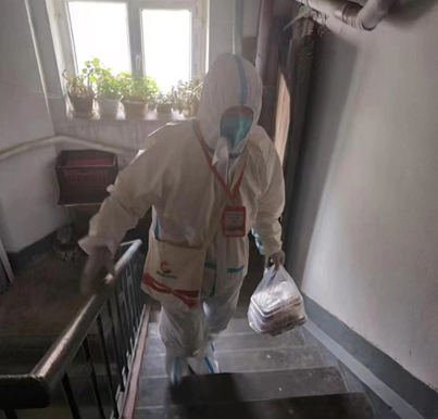 疫情发生后,振安区太平湾街道太平湾社区网格员们团结一致、身先士卒,在街道党工委和社区党委的领导下,努力为抗击疫情贡献着力量。刘琨是社区“两委”成员,也是辖区网格长之一,疫情期间,她承担了上门采集核酸的任务。每天上午她需要辗转在20多栋六层楼之间,为行动不便的老人采集核酸,下午还要和社区党委其他成员召开例会综合研判当天防控进展情况,晚上再与其他同事一起准备第二天的核酸检测需要的物资、数签、贴码。社区居民每天都能看到她骑着电动车在楼宇间奔波的身影,亲切地称呼她“拼命三娘”。