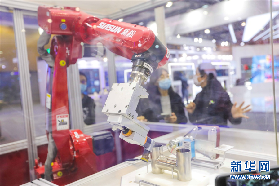 图为在2022全球工业互联网大会创新成果展上,正在作业的智能打磨机器人。新华网夏铭阳摄