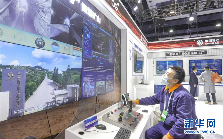 图为工作人员展示基于5G应用技术的电机车无人驾驶系统。新华网夏铭阳摄