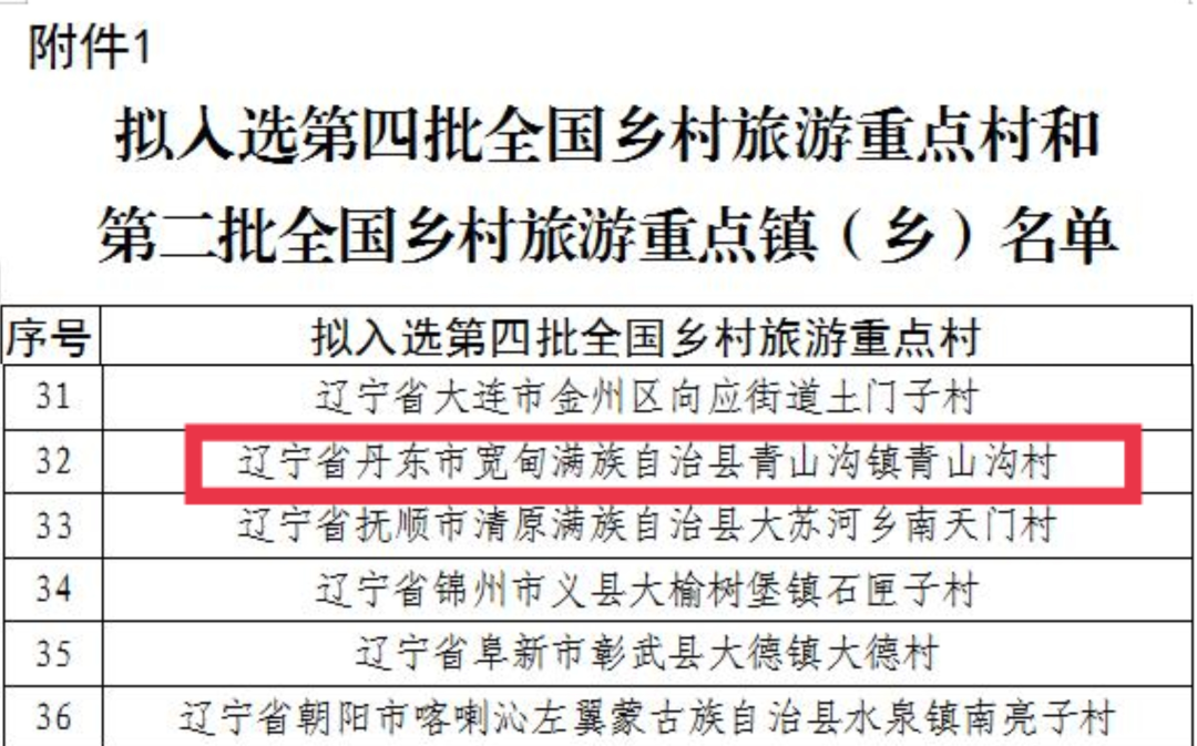 宽甸青山沟镇青山沟村上榜!
