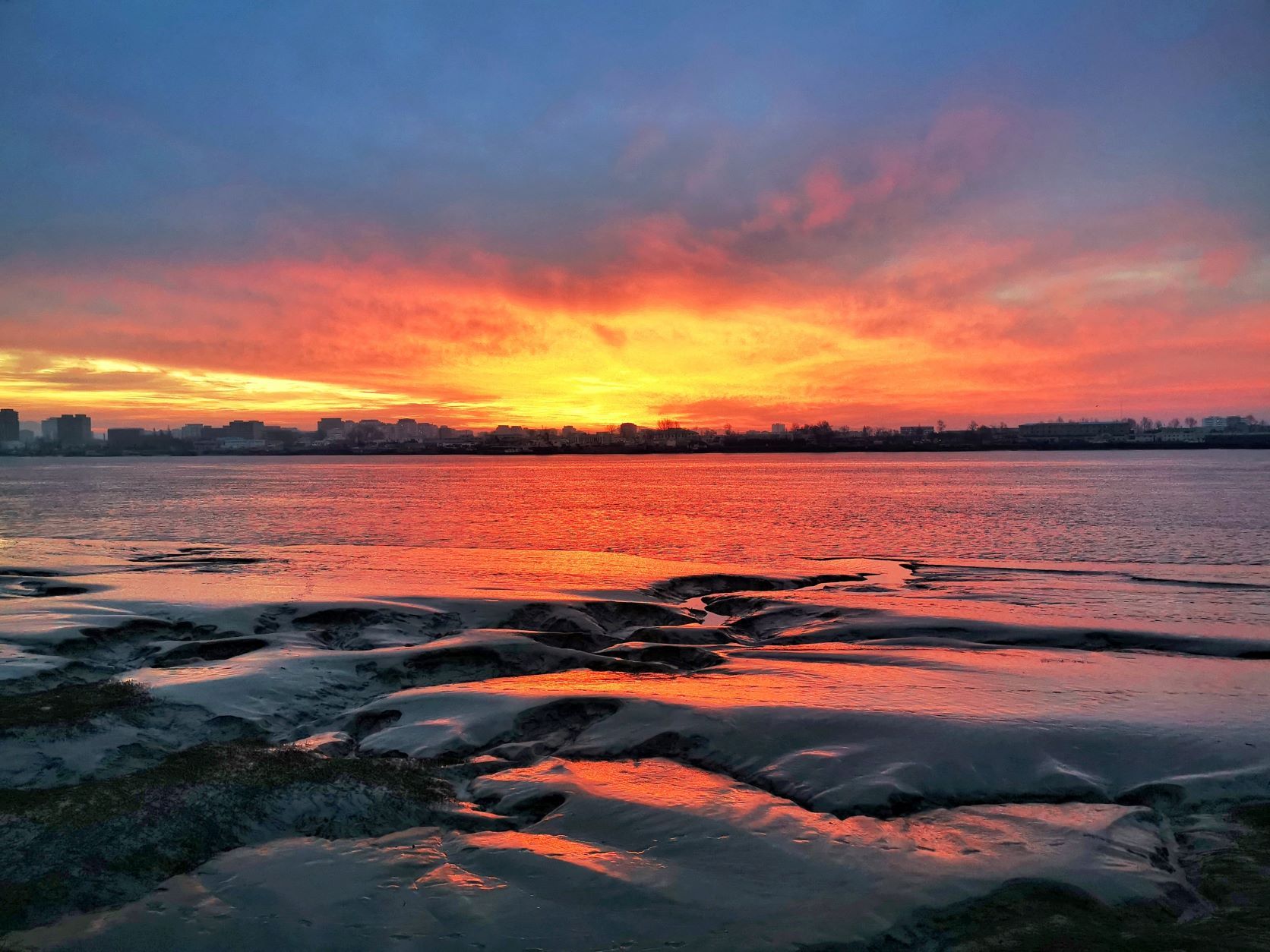 辽宁丹东:鸭绿江畔 绚烂红霞