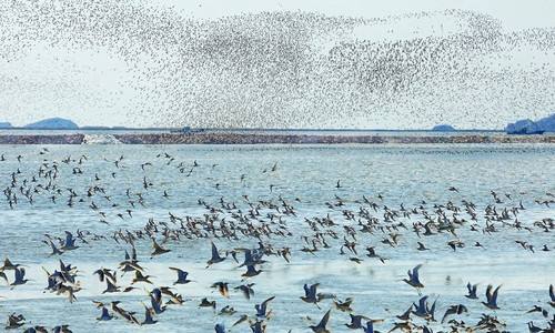 辽宁丹东 鸭绿江口湿地迎来候鸟迁飞高峰